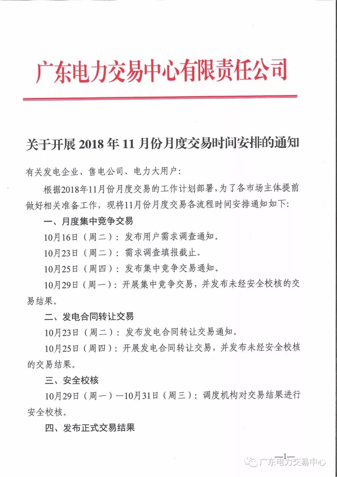 通知 | 廣東關于開展2018年11月份月度交易時間安排的通知