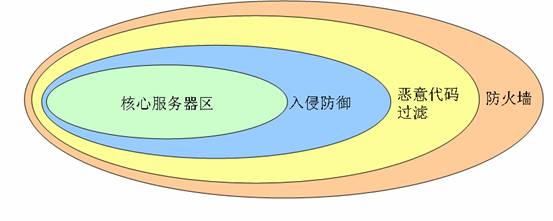 以數(shù)據(jù)中心服務(wù)器資源為核心向外延伸有三重保護(hù)功能:依托高性能硬件的一體化安全網(wǎng)關(guān)的防火墻引擎提供了對(duì)網(wǎng)絡(luò)報(bào)文深度檢測(cè)的第一重防御;以具有全面掃描能力的病毒和惡意代碼檢測(cè)引擎作為構(gòu)成對(duì)數(shù)據(jù)中心網(wǎng)絡(luò)的第二重保護(hù);依托精確的入侵防御引擎作為數(shù)據(jù)中心網(wǎng)絡(luò)的第三重保護(hù)。可以用一個(gè)形象的比喻來(lái)說(shuō)明對(duì)數(shù)據(jù)中心的三重保護(hù),數(shù)據(jù)中心就像一個(gè)國(guó)家,來(lái)往的商客就像訪問(wèn)數(shù)據(jù)中心的報(bào)文;防火墻是駐守在國(guó)境線上的軍隊(duì),一方面擔(dān)負(fù)著守衛(wèi)國(guó)土,防御外族攻擊(DDOS)的重任,另一方面負(fù)責(zé)檢查來(lái)往商客的身份(訪問(wèn)控制);病毒和惡意代碼過(guò)濾是國(guó)家的警察,隨時(shí)準(zhǔn)備捉拿雖然擁有合法身份,但仍在從事違法亂紀(jì)活動(dòng)的商客(蠕蟲(chóng)病毒),以保衛(wèi)社會(huì)秩序;入侵防御系統(tǒng)(IPS)就像企業(yè)雇傭的保安,提供最基本的安全監(jiān)管,時(shí)刻提防由內(nèi)外部人員造成的破壞。