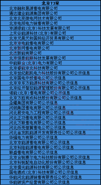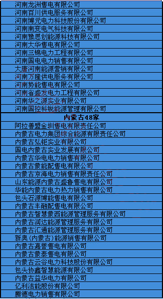 各地售電公司名錄