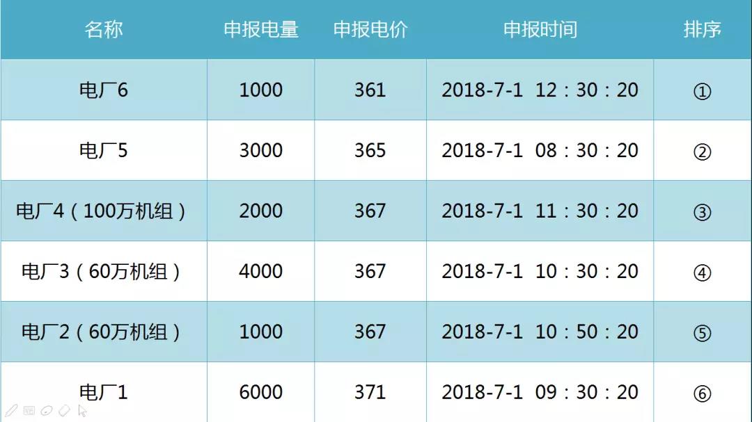 成交順序因素按電廠價格升序、容量降序、時間升序排列,電力用戶按價格降序、申報時間升序排列。