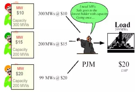 A公司在此時段購買了500MW的電能,它需要支付的金額為20元/MWH X 500=10000美元。