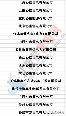第三個我們來看看“協(xié)鑫”,協(xié)鑫對于電力行業(yè)的人來說并不陌生,據(jù)小編不完全統(tǒng)計協(xié)鑫目前成立了十幾家售電公司,其中有較為被大家熟知的“協(xié)鑫南方售電有限公司”,在名單中小編發(fā)現(xiàn)協(xié)鑫的一家生物質(zhì)發(fā)電公司也涉足了售電,名單如下: