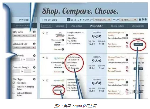 售電公司在營銷能力建設(shè)上,除了要利用和宣傳自身獨(dú)特優(yōu)勢外,要充分重視新媒體的力量。下圖為美國Forgitit公司。Forgitit是一家2013年成立于美國的綜合電力服務(wù)公司,其迎合了競爭性電力市場中的用戶需求,通過提供電力消耗監(jiān)控等多種服務(wù),幫助用戶實(shí)時了解電力消耗水平及電力支出;一旦電力消費(fèi)合同期滿需要續(xù)簽的時候,F(xiàn)orgitit的服務(wù)系統(tǒng)將自動評估市場中不同電力供應(yīng)商所提供的用電方案,并根據(jù)消費(fèi)者的使用習(xí)慣推薦最優(yōu)方案。