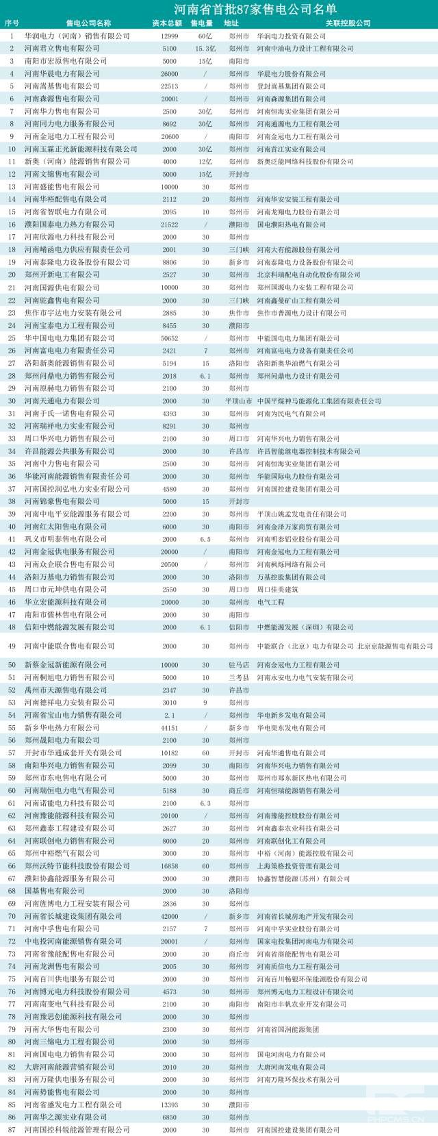 最后附上河南省增量配電業(yè)務(wù)試點(diǎn)及河南省首批87家售電公司信息哦: