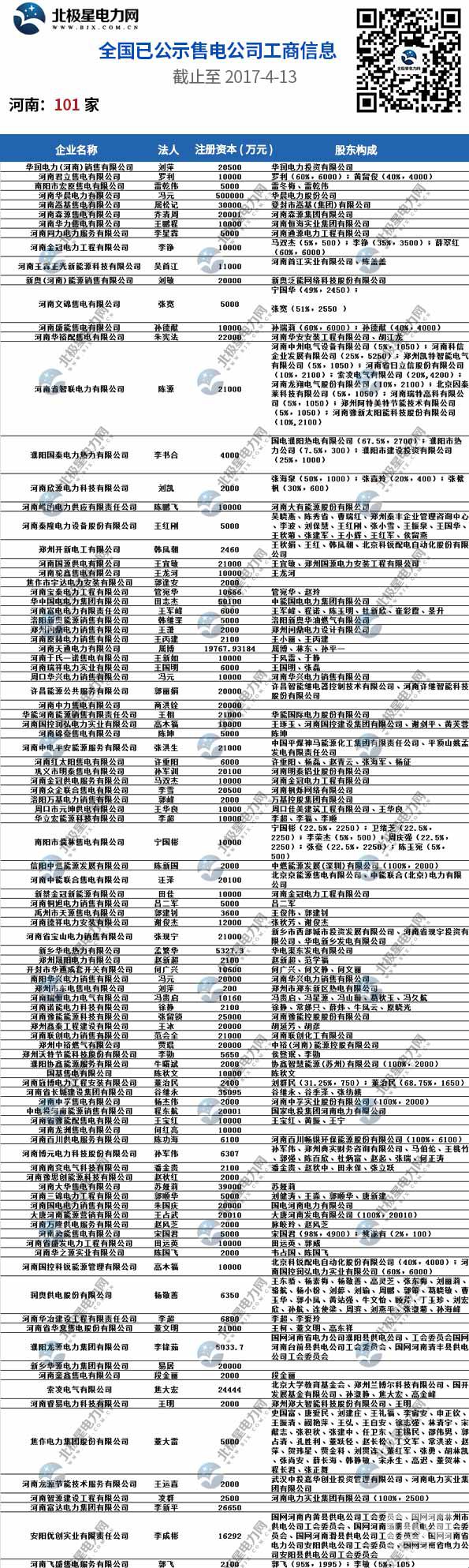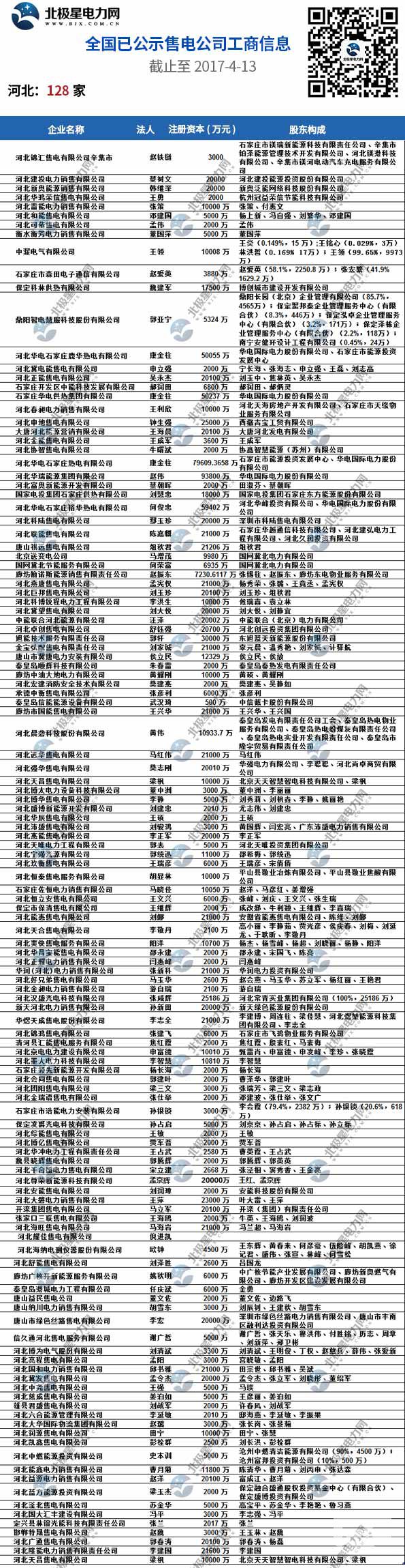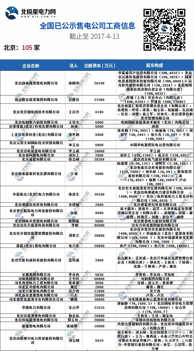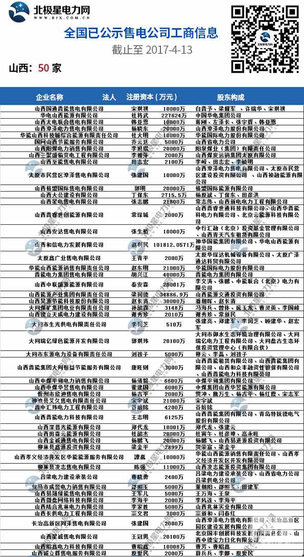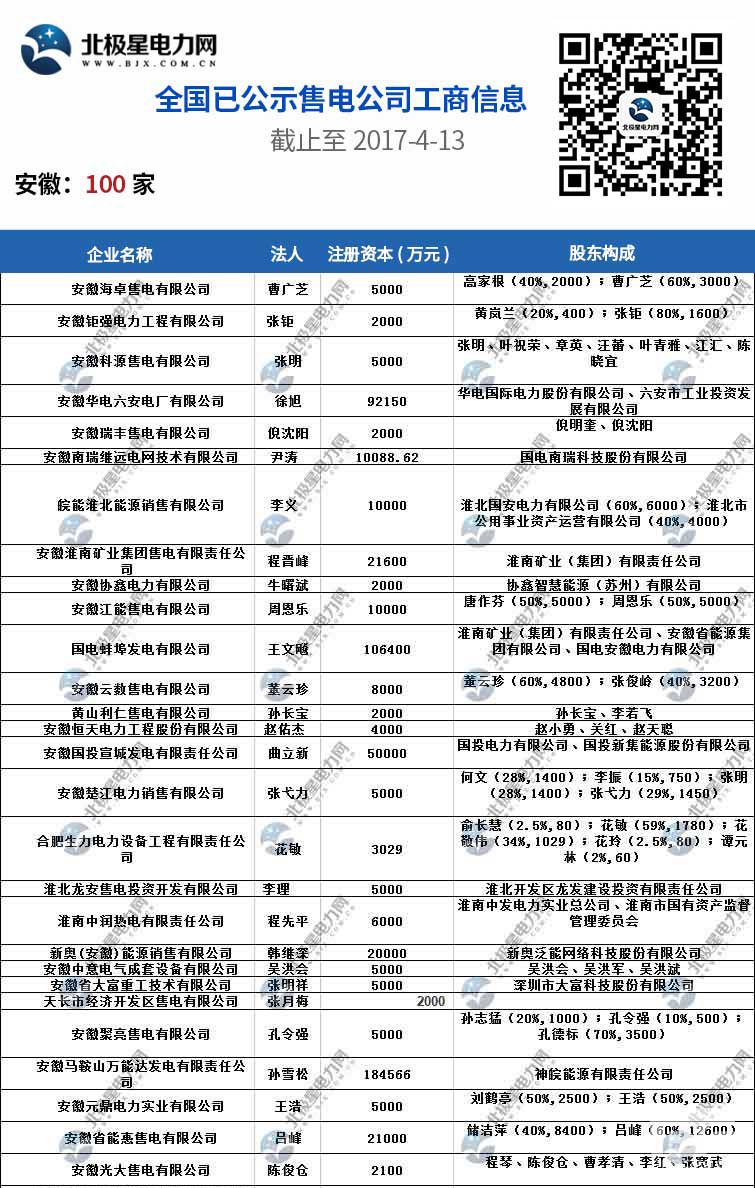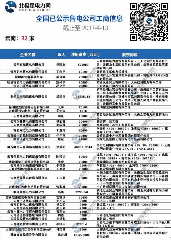 全國已公示1371家售電公司名單(截止2017-4-13)