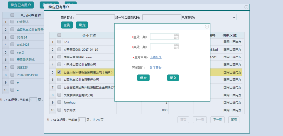 (1)綁定已有用戶。售電公司可以選擇系統(tǒng)中已經(jīng)存在的用戶進(jìn)行綁定。綁定時需要選擇綁定期限,必須上傳三方合同。