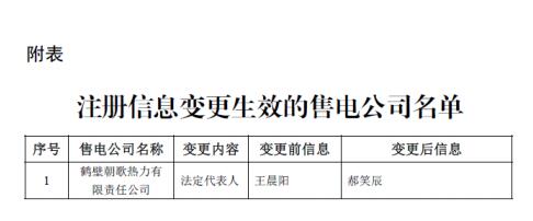 河南鶴壁朝歌熱力有限責(zé)任公司注冊(cè)信息變更生效