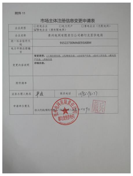 附件4:《市場主體注冊信息變更申請表(貴州電網(wǎng)有限責任公司都勻龍里供電局)》(另附)