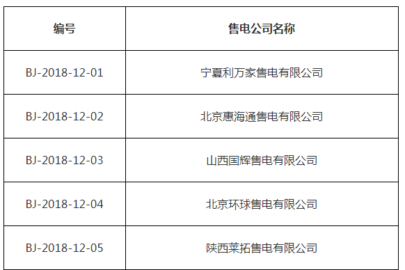 北京發(fā)布了《公示受理注冊的售電公司相關(guān)信息的公告》