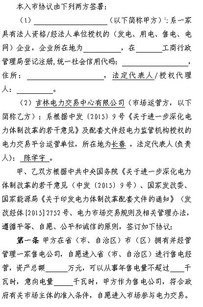 7. 售電公司注冊“入市協(xié)議”按照附件7樣式填寫,并進行簽署、蓋章。