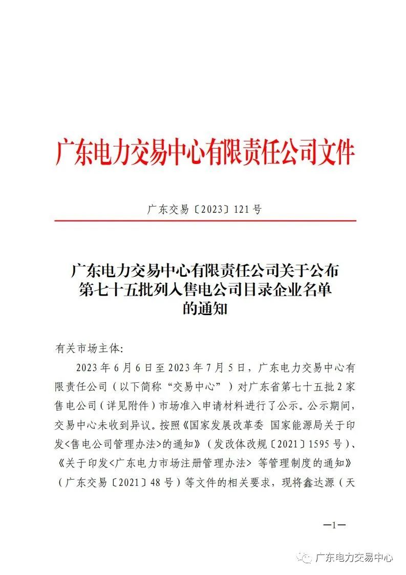 廣東公布第七十五批列入售電公司目錄企業(yè)名單
