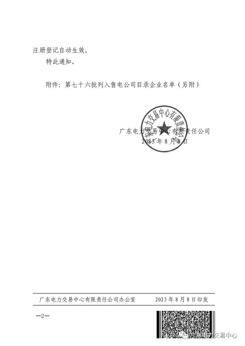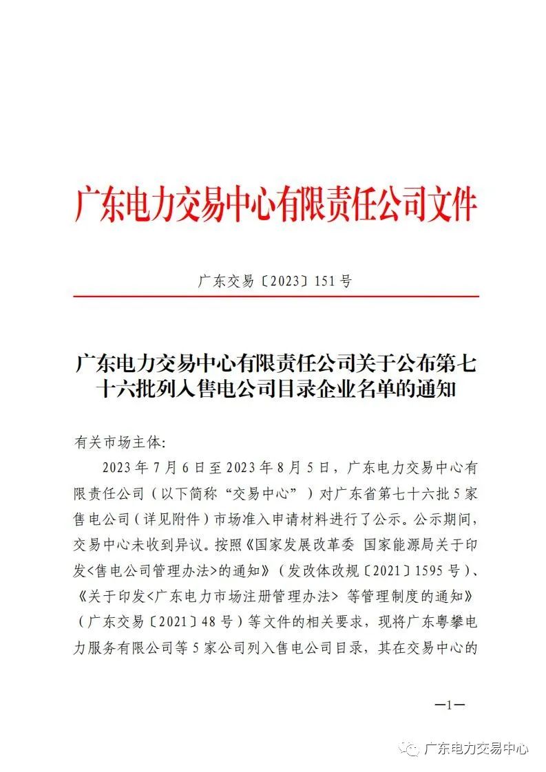 日前廣東電力交易中心公布第七十六批列入售電公司目錄企業(yè)名單,詳情如下: