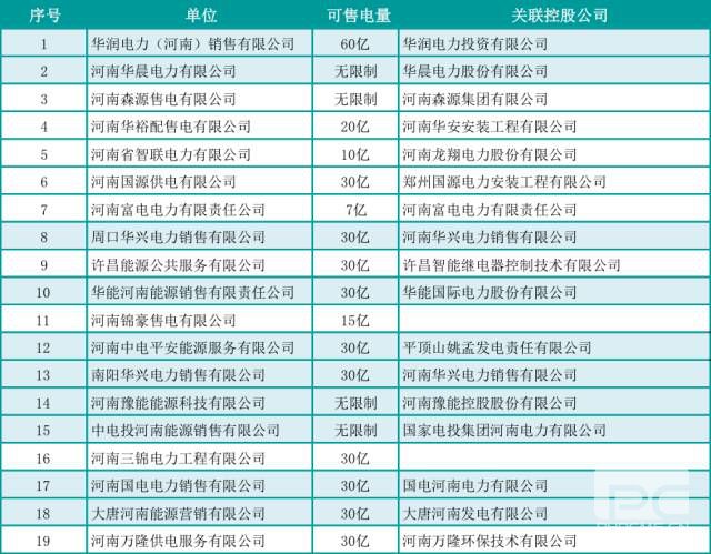 河南十九家擁有配電經(jīng)營業(yè)務的售電公司及關聯(lián)公司
