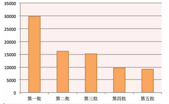 如果注冊(cè)資本與公司規(guī)模完全沒(méi)有關(guān)系,那么此圖的各批數(shù)據(jù)應(yīng)該是隨機(jī)分布。然而并事實(shí)并非如此,從第一批到第五批,售電公司確實(shí)經(jīng)歷了從實(shí)力雄厚、以大型發(fā)電集團(tuán)、國(guó)企等背景向平均水平的社會(huì)資本轉(zhuǎn)變的過(guò)程。
