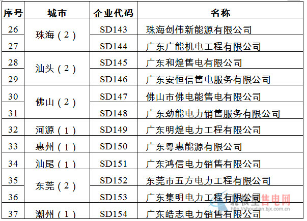 截至目前,全國共有6個省份公示了售電公司信息,分別是甘肅、貴州、廣東、寧夏、江西、重慶,共267家售電公司,名單如下:甘肅29家:甘肅錦泰電力有限責任公司甘肅電投售電有限公司甘肅宏祥能源服務有限公司甘肅
