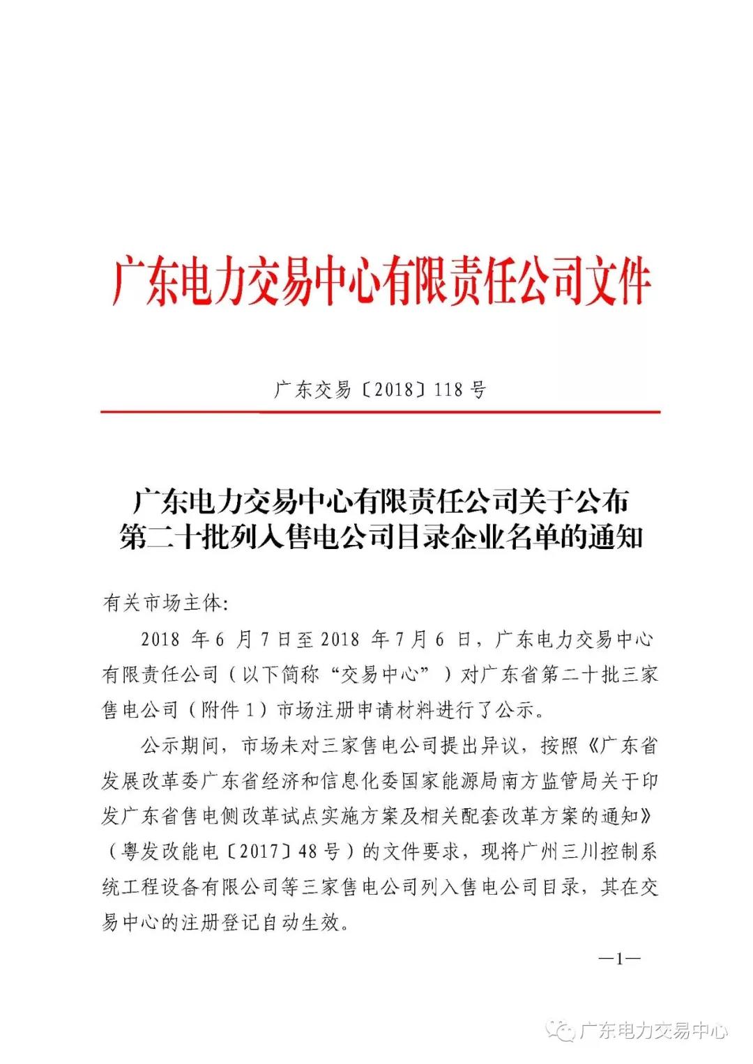 2018年6月7日至7月6日,廣東電力交易中心對(duì)廣東省第二十批三家售電公司市場(chǎng)注冊(cè)申請(qǐng)材料進(jìn)行了公示。公示期間,市場(chǎng)未對(duì)三家售電公司提出異...