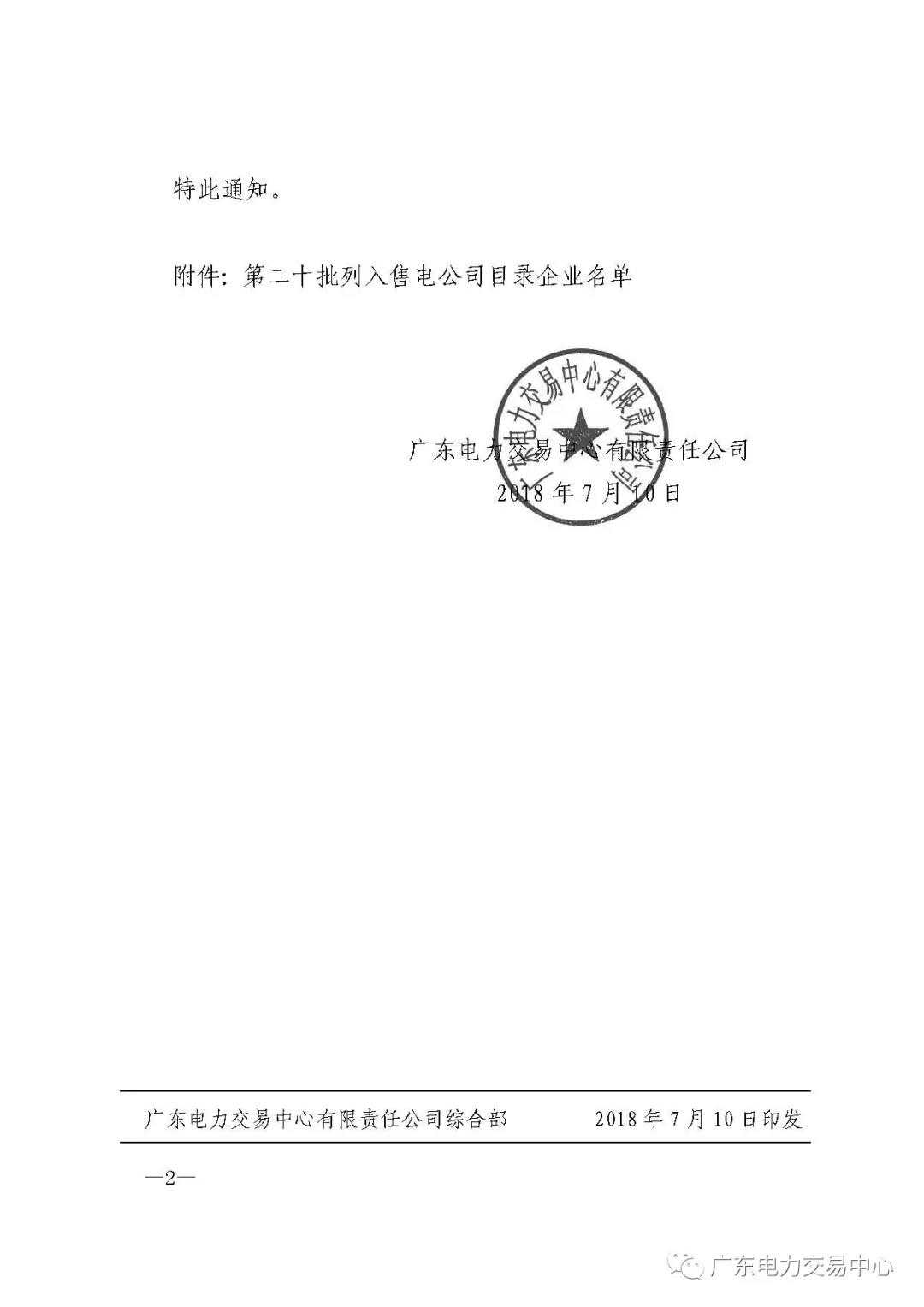 廣東關(guān)于公布第二十批列入售電公司目錄企業(yè)名單的通知
