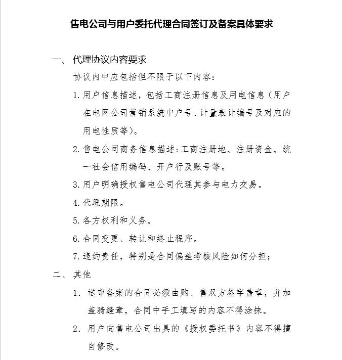 2.提交代理合同時(shí)一并提交電力用戶出具的《授權(quán)委托書》(見附件二),一式一份。
