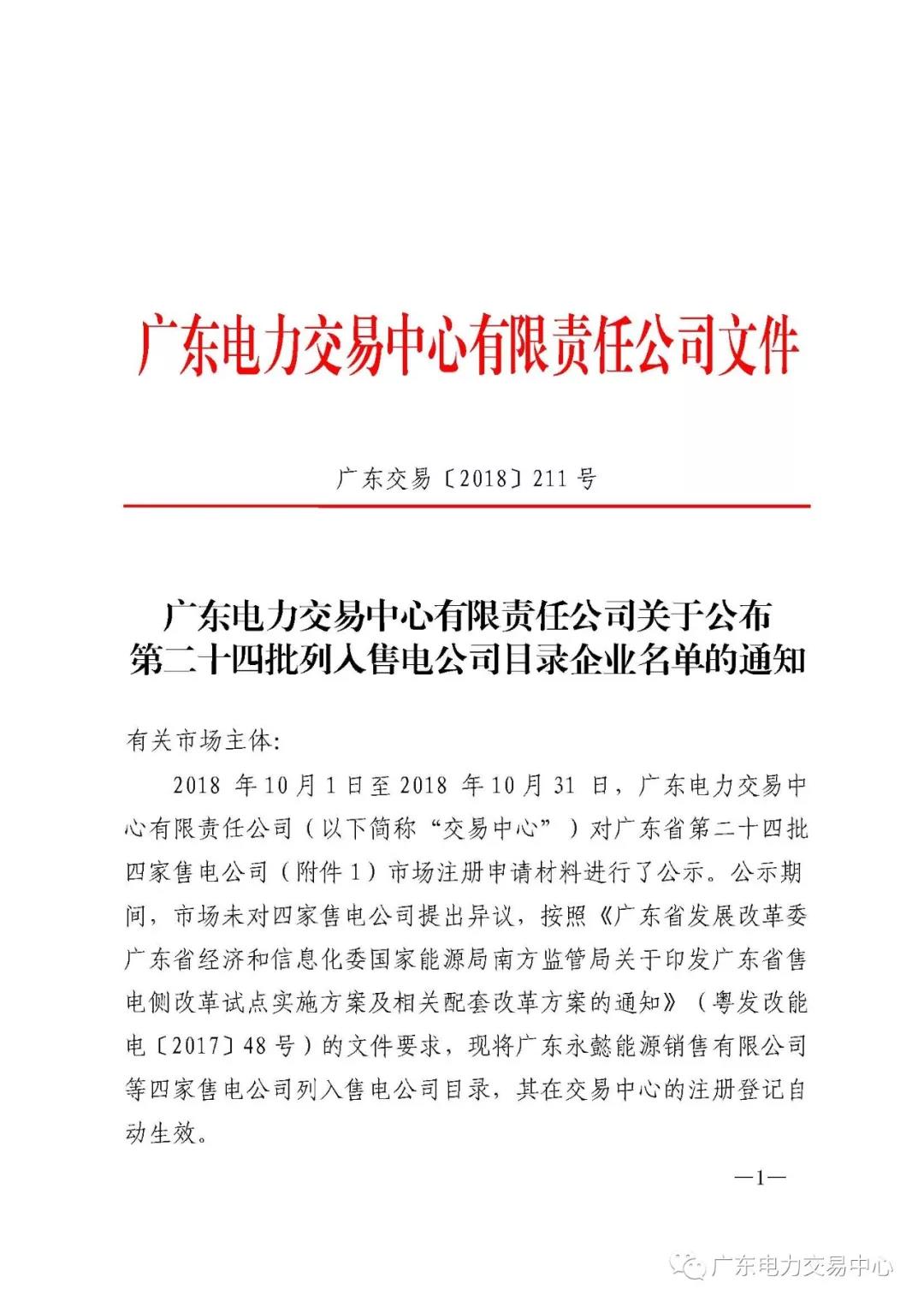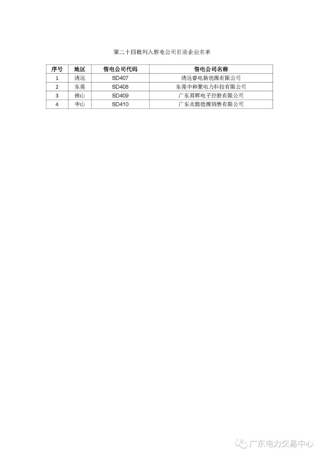 通知 | 廣東關(guān)于公布第二十四批列入售電公司目錄企業(yè)名單的通知