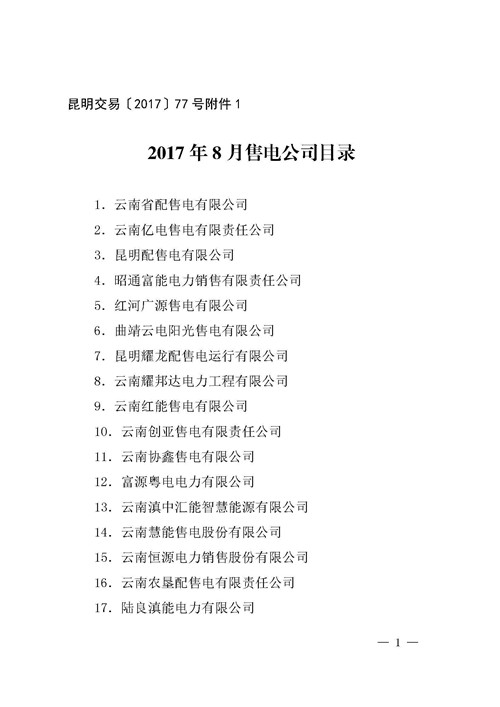 50家!云南公布8月售電企業(yè)目錄