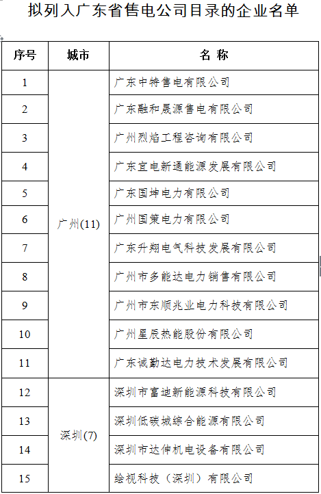 廣東省經(jīng)濟(jì)和信息化委關(guān)于擬列入售電公司目錄企業(yè)名單的公示