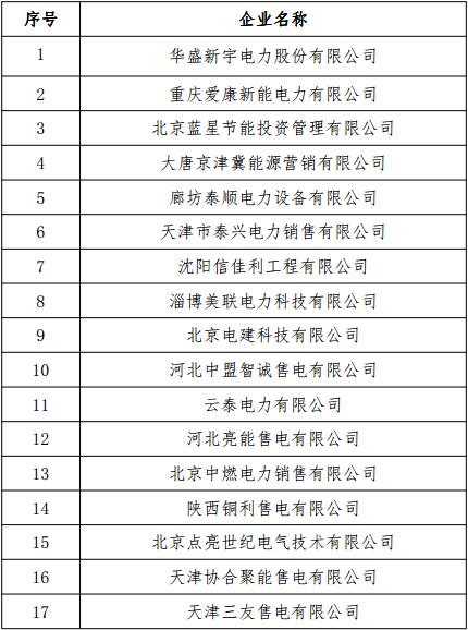 附件2:北京電力交易中心受理售電公司(在河北南部電網(wǎng)有售電業(yè)務(wù))