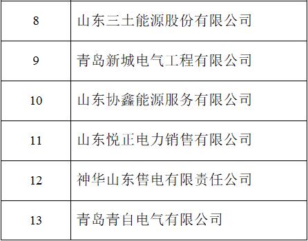 附件:山東省通過(guò)公示的售電公司名單(第六批)