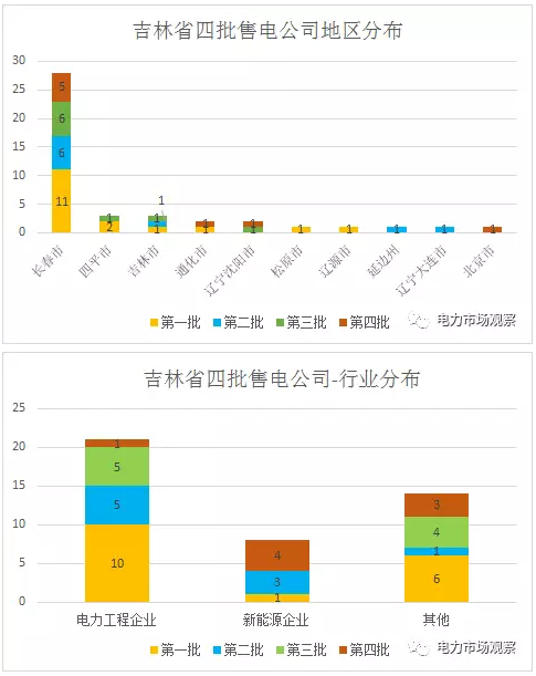 目前,吉林電力交易中心分別于7月7日、8月3日、9月1日以及11月1日公示了四批售電公司,共計43家。其中,第一批17家,第二批9家,第三批9家,第四批8家。值得一提的是,第二批和第三批售電公司中各有1家跨省售電公