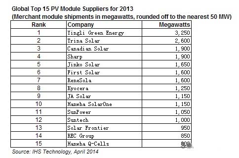 據(jù)研究機(jī)構(gòu)IHS《2014年第一季度光伏一體化市場跟蹤》(Q1PVIntegratedMarketTracker)顯示,2013年,全球領(lǐng)先太陽能組件供應(yīng)商主導(dǎo)地位鞏固,中國企業(yè)更是風(fēng)光耀眼,領(lǐng)先群雄。