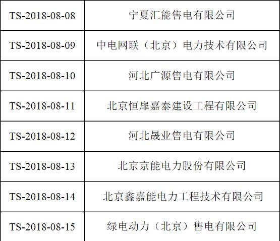 于2018年8月13日至2018年9月12日對北京電陽電力銷售有限公司等20家售電公司的市場注冊申請材料進行了公示。公示期間,市場有關(guān)方面未對該20家售電公司提出異議,該20家售電公司(見附表)在首都電力交易中心的注冊自動生效。