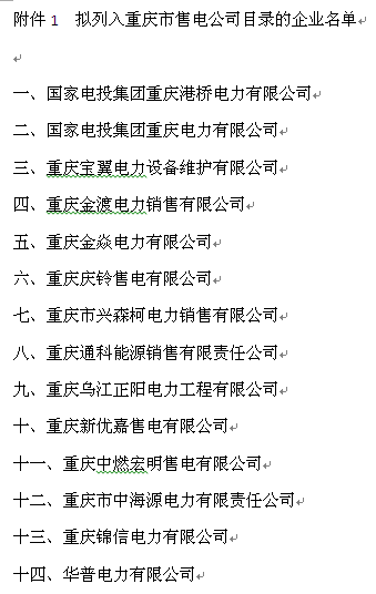 重慶寒陽售電股份有限公司、重慶彤運售電有限公司、重慶科陸售電有限公司、重慶英菲葆爾電力銷售有限公司、華能重慶能源銷售有限責任公司