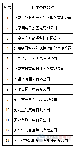 貴州華電烏江售電有限公司、貴州產投聚能配售電有限公司、凱里產投聚源配售電有限公司、貴州黔能企業(yè)(集團)公司、、貴州金惠電力銷售有限公司、貴州協鑫售電有限公司、貴州華網電力銷售有限公司、貴州海德潤達能源服務有限公司、貴州貴通緣售電有限公司、大唐貴州能源營銷有限公司、貴州科陸售電有限公司、銅仁市錦江售電有限責任公司、貴州京泰安能源有限公司、貴州烏蒙招商投資服務有限公司、貴州能惠售電有限公司、貴安新區(qū)配售電有限公司、貴州中能售電有限公司、貴州超宇售電有限責任公司、貴州匯能源售電服務有限公司、粵電貴州電力銷售有限公司、TCL華科能源互聯網(貴州)股份有限公司、貴州新電能售電有限公司
