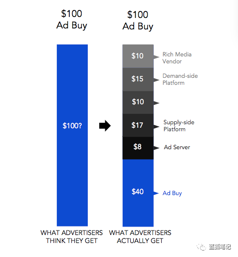 總之,在整個數(shù)字廣告領域,雖然在自動化上有了提升,但還是有很多不透明的地方。原因很簡單,所有的廣告活動投放,廣告商是無法直接訪問到源代碼數(shù)據(jù),所有的效果衡量都來自于供應商的報告。每個供應商衡量的方式也有不同。也就是,作為客戶很難真正驗證真實的情況。比如,有的搜索引擎的付費鏈接是按照點擊付費的,作為廣告商,有時候很難了解到這是真實用戶的點擊還是非真實用戶的點擊。這讓廣告商的營銷成本大增。