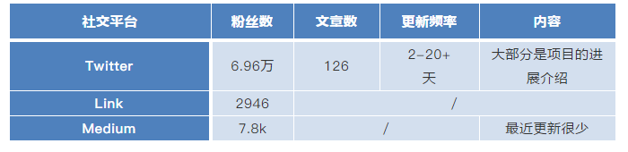 NEX的社群除了Twitter人氣較高以外,其他兩個社群粉絲數(shù)較少,項目方應(yīng)加強其他渠道的運營力度。