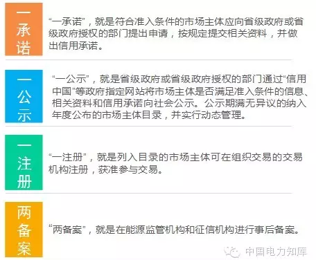 按照簡(jiǎn)政放權(quán)的原則,《實(shí)施意見(jiàn)》對(duì)售電側(cè)市場(chǎng)的準(zhǔn)入和退出機(jī)制作了創(chuàng)新性安排,這是新一輪電力體制改革中的一個(gè)亮點(diǎn)。準(zhǔn)入機(jī)制方面,將以注冊(cè)認(rèn)定代替行政許可的準(zhǔn)入方式,以降低行政成本,實(shí)現(xiàn)有效監(jiān)管,提升工作效率,重點(diǎn)是“一承諾、一公示、一注冊(cè)、兩備案”。