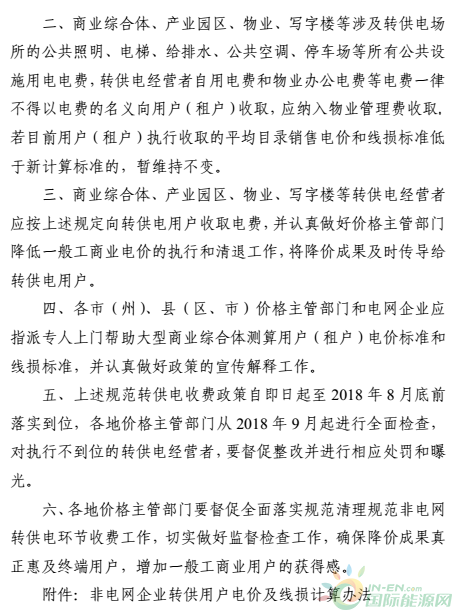 近日,四川省發(fā)改委公布《關(guān)于清理規(guī)范非電網(wǎng)轉(zhuǎn)供電環(huán)節(jié)收費有關(guān)事項的通知》,《通知》明確:商業(yè)綜合體、產(chǎn)業(yè)園區(qū)、物業(yè)、寫字樓等轉(zhuǎn)供電經(jīng)營者,應(yīng)按照轉(zhuǎn)供用戶每月電量,以及所公布的轉(zhuǎn)供電用戶電價和線損計算辦法(詳見附件),計算收取電費。