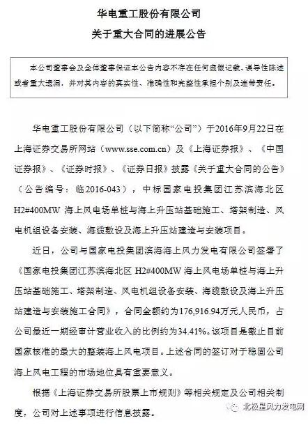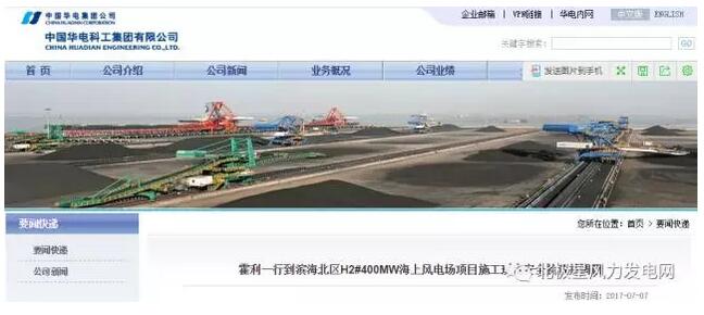 華電重工中標(biāo)濱海北區(qū)H2#400MW海上風(fēng)電場工程