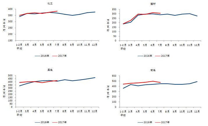 圖4  2016、2017年重點(diǎn)行業(yè)分月用電量情況