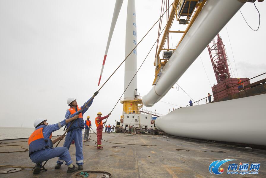 經(jīng)過40個小時的緊張施工作業(yè),總裝機容量300MW、總投資51億元的江蘇如東近海雙十(風(fēng)電場距岸基十公里以上,安裝點水深十米左右)風(fēng)電場最后一臺機組于9月3日中午完成吊裝。這是迄今為止亞洲已經(jīng)建成的裝機容量最