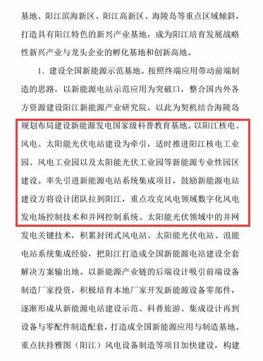 廣東陽江戰(zhàn)略性新興產(chǎn)業(yè)“十三五”規(guī)劃:風電裝機1.78GW 建設6.5MW級海上風機制造基地(附規(guī)劃