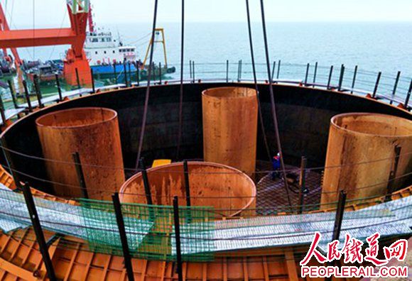 首個(gè)鋼套箱總重量達(dá)到220噸,高度達(dá)到8米(包含牛腿高度),鋼套箱平面面積達(dá)到360平方米,鋼套箱側(cè)板與底板面積達(dá)到670平方米。
