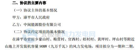 中閩能源簽訂福建漳平90MW風(fēng)電場項目協(xié)議 總投資約8.5億