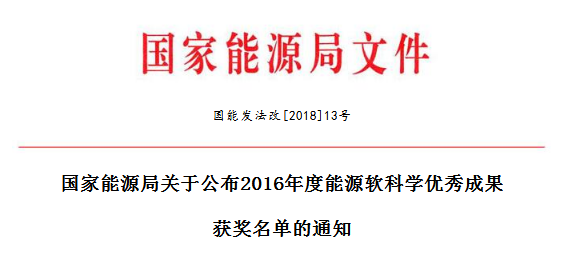 國家能源局關于公布2016年度能源軟科學優(yōu)秀成果