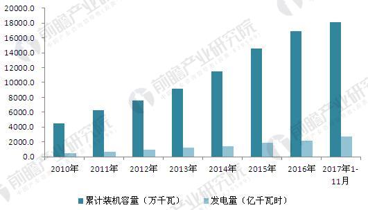 圖表3:2010-2017年中國風電裝機容量與發(fā)電量情況(單位:萬千瓦,億千瓦時)