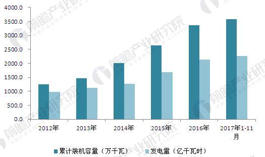 圖表5:2012-2017年生物質能發(fā)電裝機容量與發(fā)電量情況(單位:萬千瓦,億千瓦時)