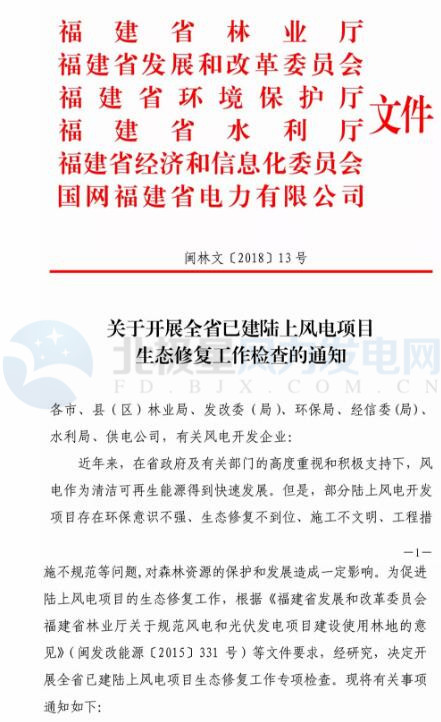近日,福建省林業(yè)廳聯(lián)合省發(fā)改委、省環(huán)保廳等6家單位下發(fā)《關(guān)于開展全省已建陸上風(fēng)電項目生態(tài)修復(fù)工作檢查的通知》,進(jìn)一步加強(qiáng)協(xié)同監(jiān)管,建立生態(tài)修復(fù)專項檢查聯(lián)動機(jī)制,促進(jìn)生態(tài)修復(fù)。