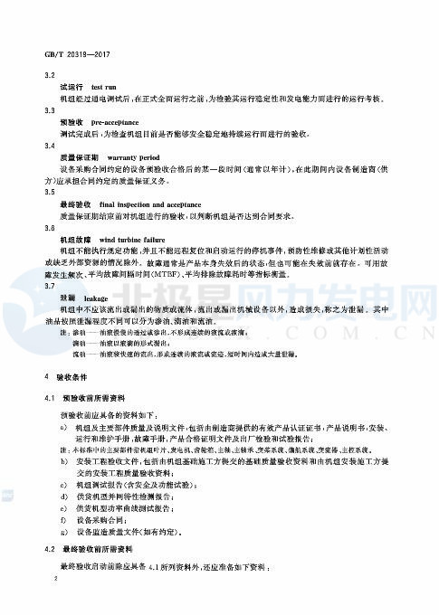 《風力發(fā)電機組驗收規(guī)范》全文:
