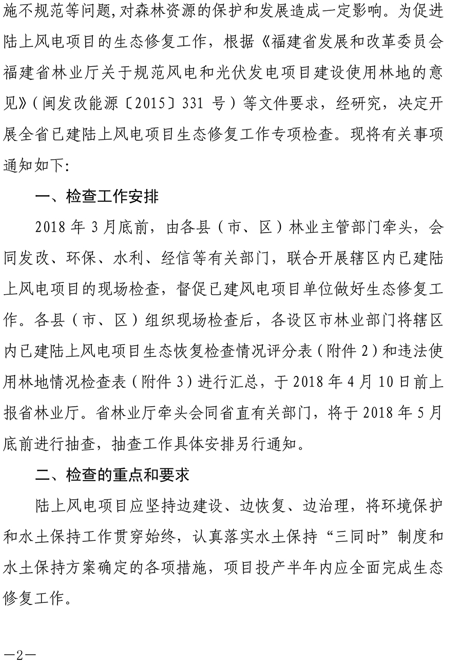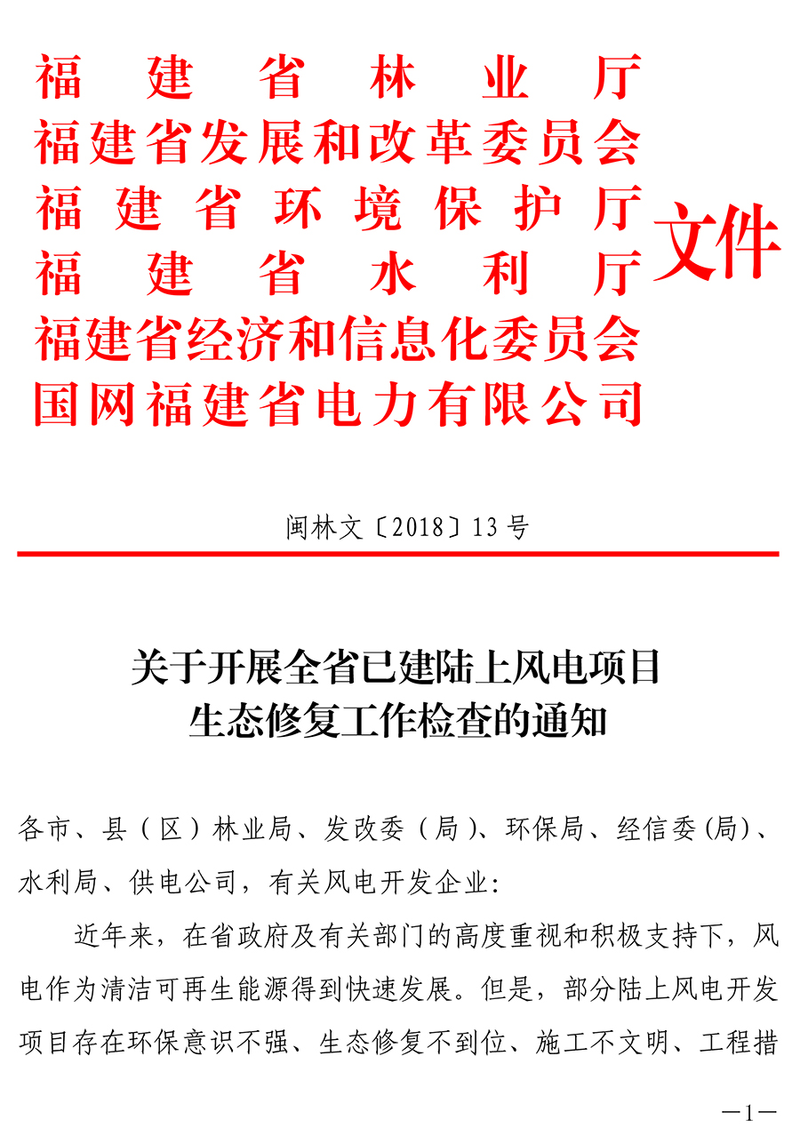 近日,福建省林業(yè)廳聯(lián)合省發(fā)改委、省環(huán)保廳等6家單位下發(fā)《關(guān)于開(kāi)展全省已建陸上風(fēng)電項(xiàng)目生態(tài)修復(fù)工作檢查的通知》,進(jìn)一步加強(qiáng)協(xié)同監(jiān)管,建立生態(tài)修復(fù)專項(xiàng)檢查聯(lián)動(dòng)機(jī)制,促進(jìn)生態(tài)修復(fù)。