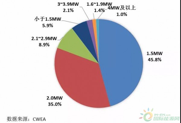與2016年相比,變化幅度較大有,2.1MW至2.9MW機(jī)組市場份額增長了11%;1.5MW機(jī)組市場份額下降了11%至6.2%。