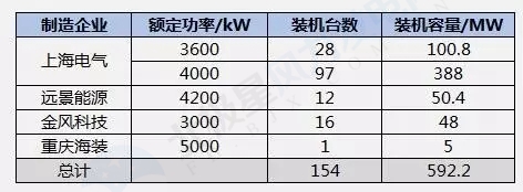 2016年,中國海上風電新增裝機154臺,容量達到59萬千瓦,同比增長64%。共有4家制造企業(yè)有新增吊裝,其中,上海電氣的海上風電機組供應量最大,占比達到82.5%;其次是遠景能源、金風科技和重慶海裝。